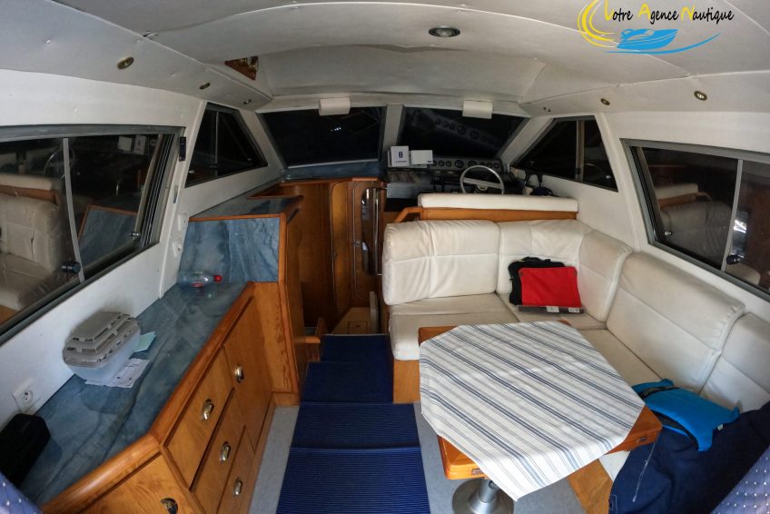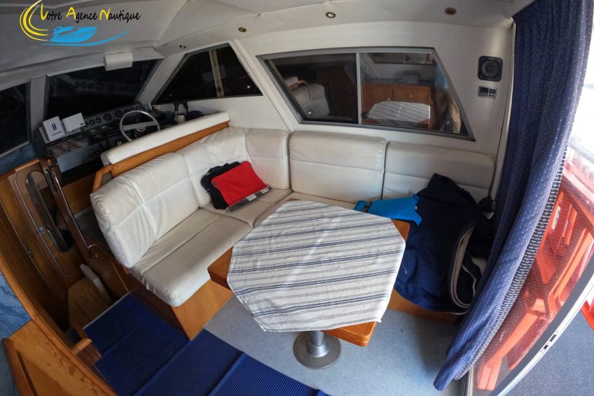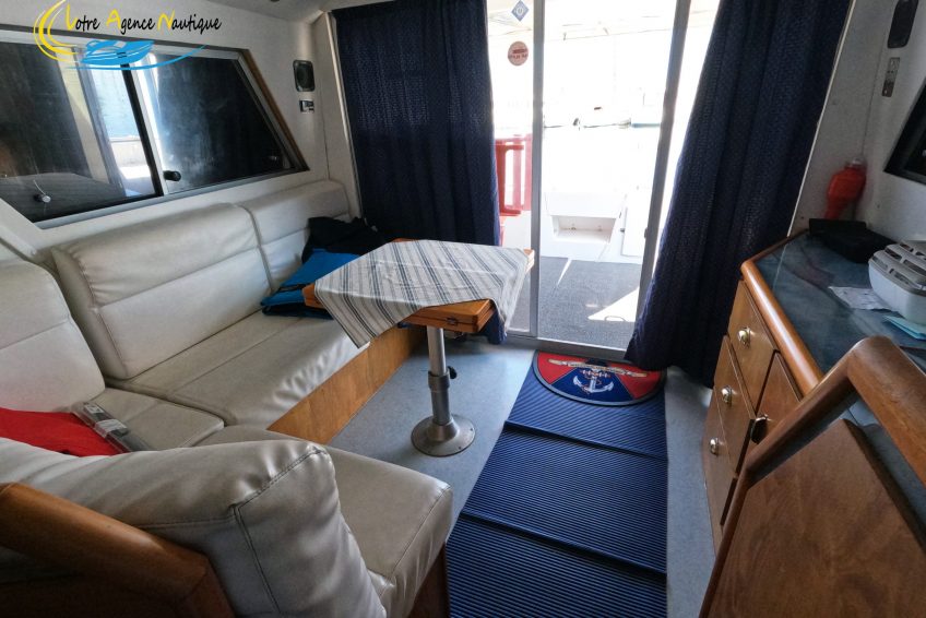 - Le poste de pilotage intérieur et un grand salon avec un canapé en L, la sellerie est en parfait état. Un espace de vie convivial pour vivre de beaux moments de partage .