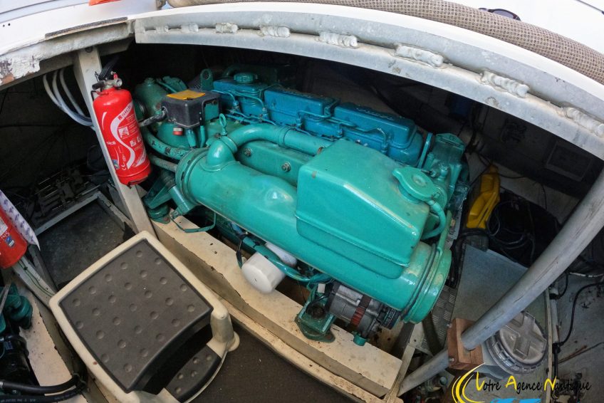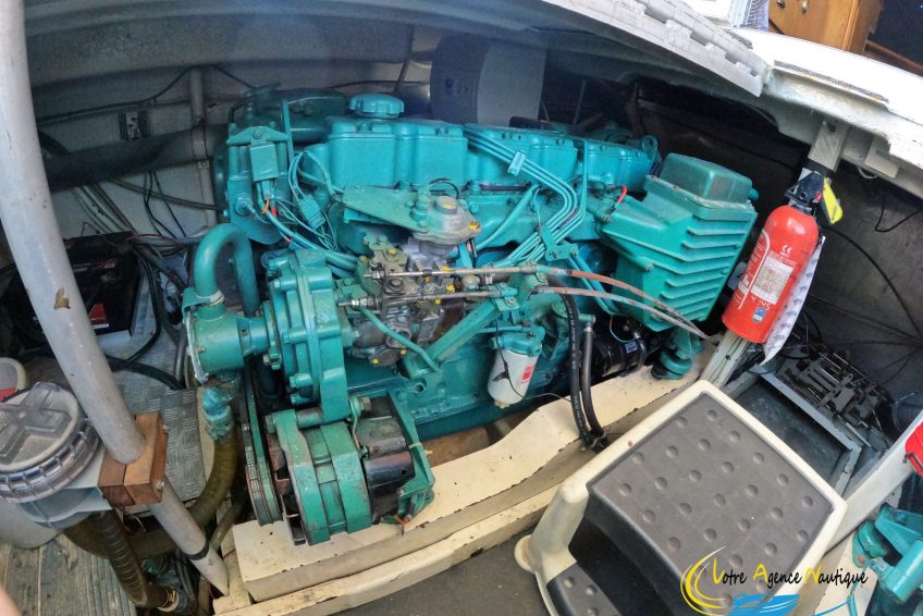 2 Volvo Penta AD41 de 200Cv chacun, Diesel. Environ 1800 h. 4 batteries (2 moteurs, 2 de service). Transmission par ligne d’arbre Vdrive, commande hydraulique.