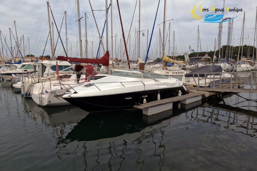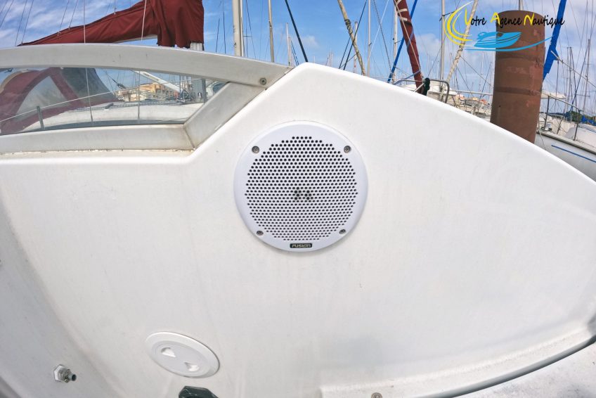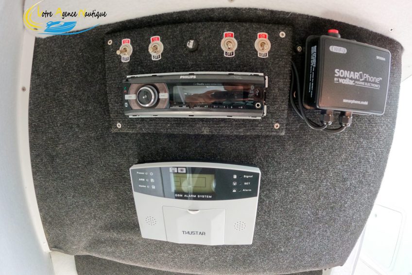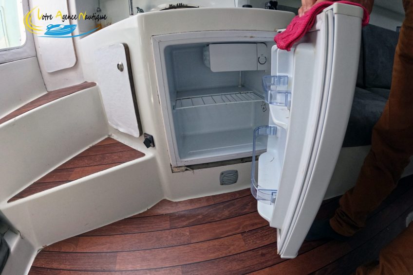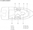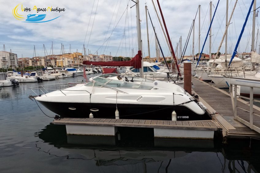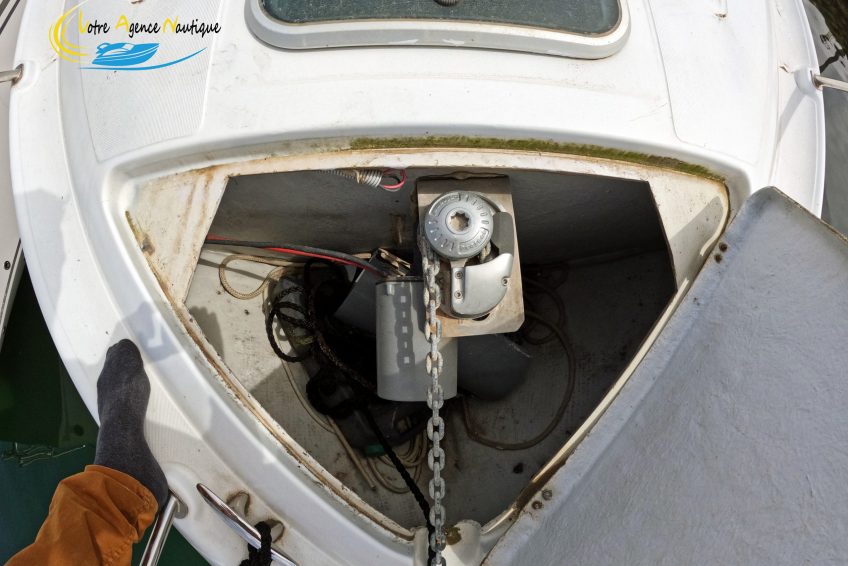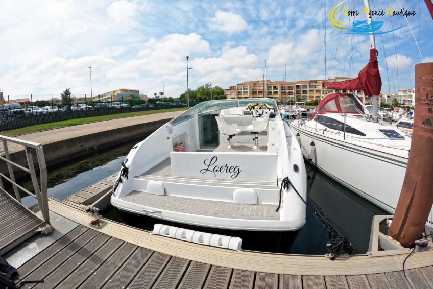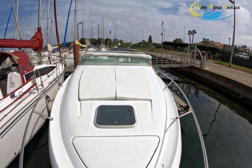 Une belle table avec une banquette arrière, les sièges du pilote et du co-pilote à 360° permettent de conduire avec aisance ou de profiter de ses convives attablés, taud de soleil dépliable. Sur l’avant un bain de soleil 2 places.