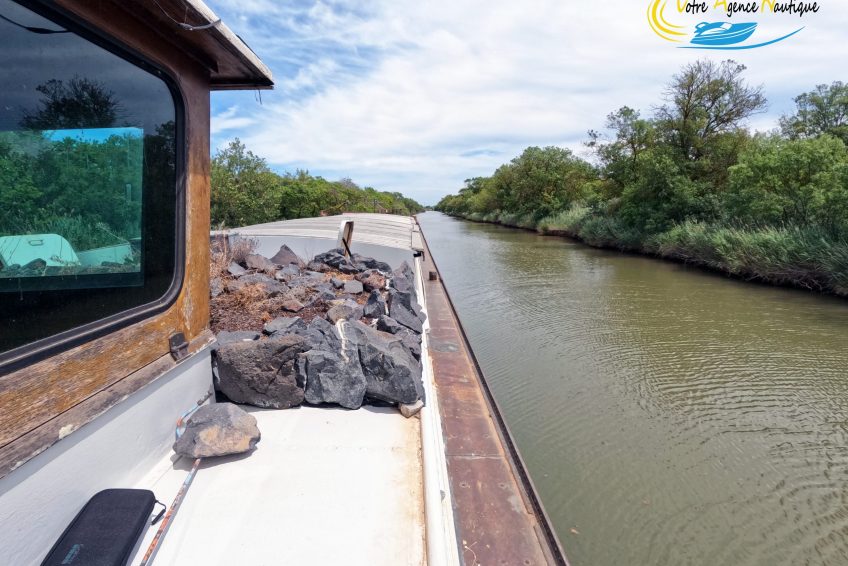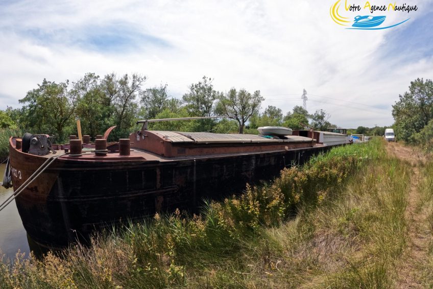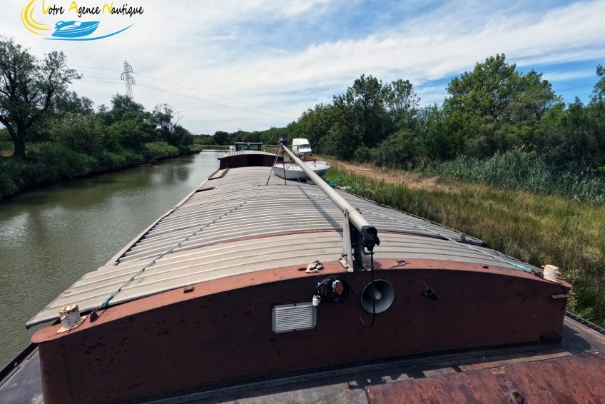 Péniche de type Freycinet, ancien bateau de transport de céréales dans le Nord de la France. Il y a 2 ans, elle a navigué du Nord jusqu’au Sud.