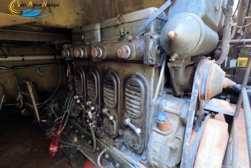 Baudouin 100 CV Diesel, révision mars 2021, réservoir 2350 litres. Transmission ligne d’arbre. Groupe électrogène Lister 10kva