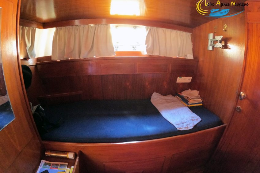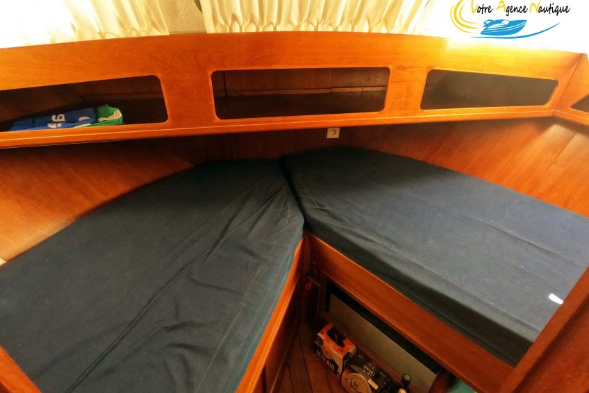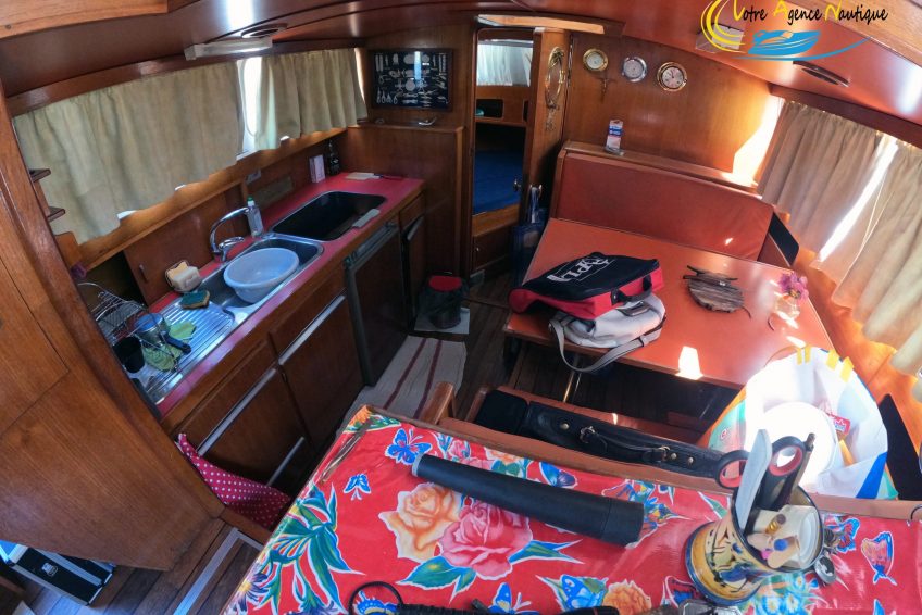 Sur tribord : Un carré transformable permettant de manger confortablement et de créer un lit deux places.