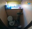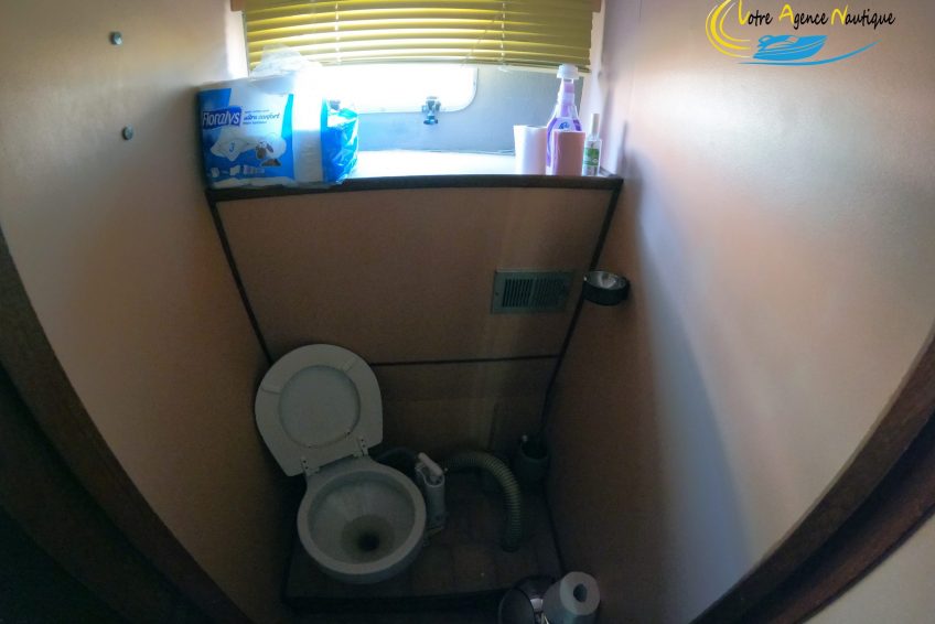 Sur bâbord : Un WC marin manuel.