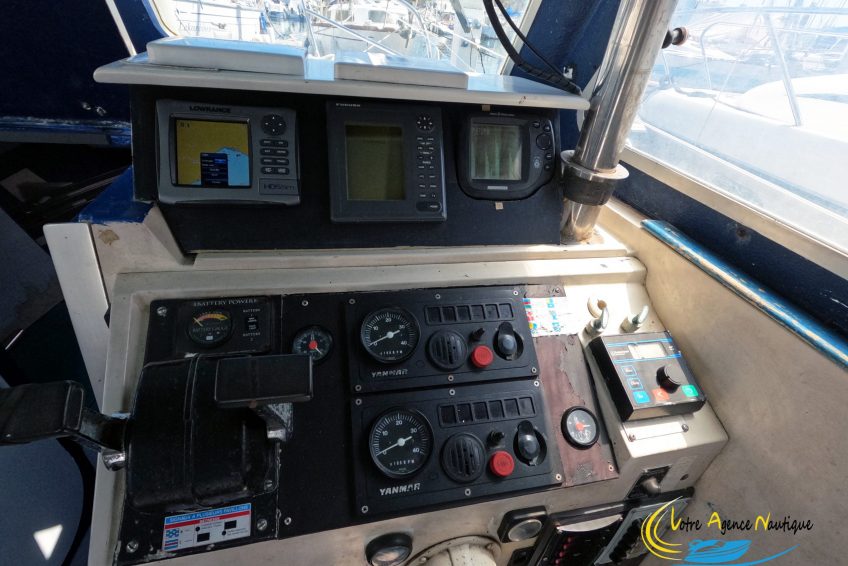 Le plus de ce bateau : Les 2 moteurs Yanmar diesel sont de 2007 et font 100 CV chacun et ont seulement 350h. Sondeur, GPS, radar, radio, pilote auto.
