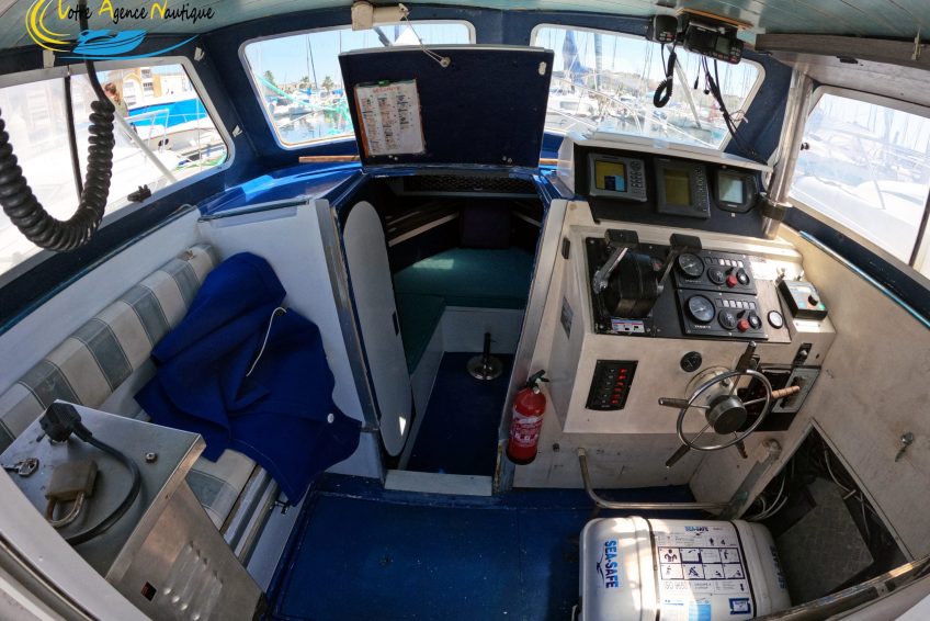 - Le poste de pilotage avec son équipement électronique complet (GPS, sondeur, radar, radio, pilote auto)